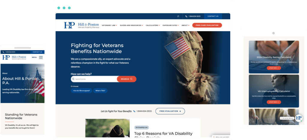Hill & Ponton’s attorneys specialize in helping veterans with disability benefits, but they can’t take every single case. That’s why they’ve grown their website into a massive resource library to help veterans do their own research.